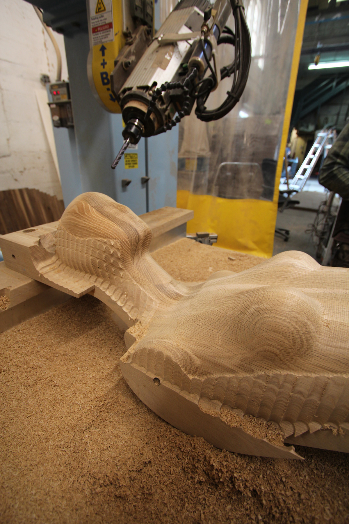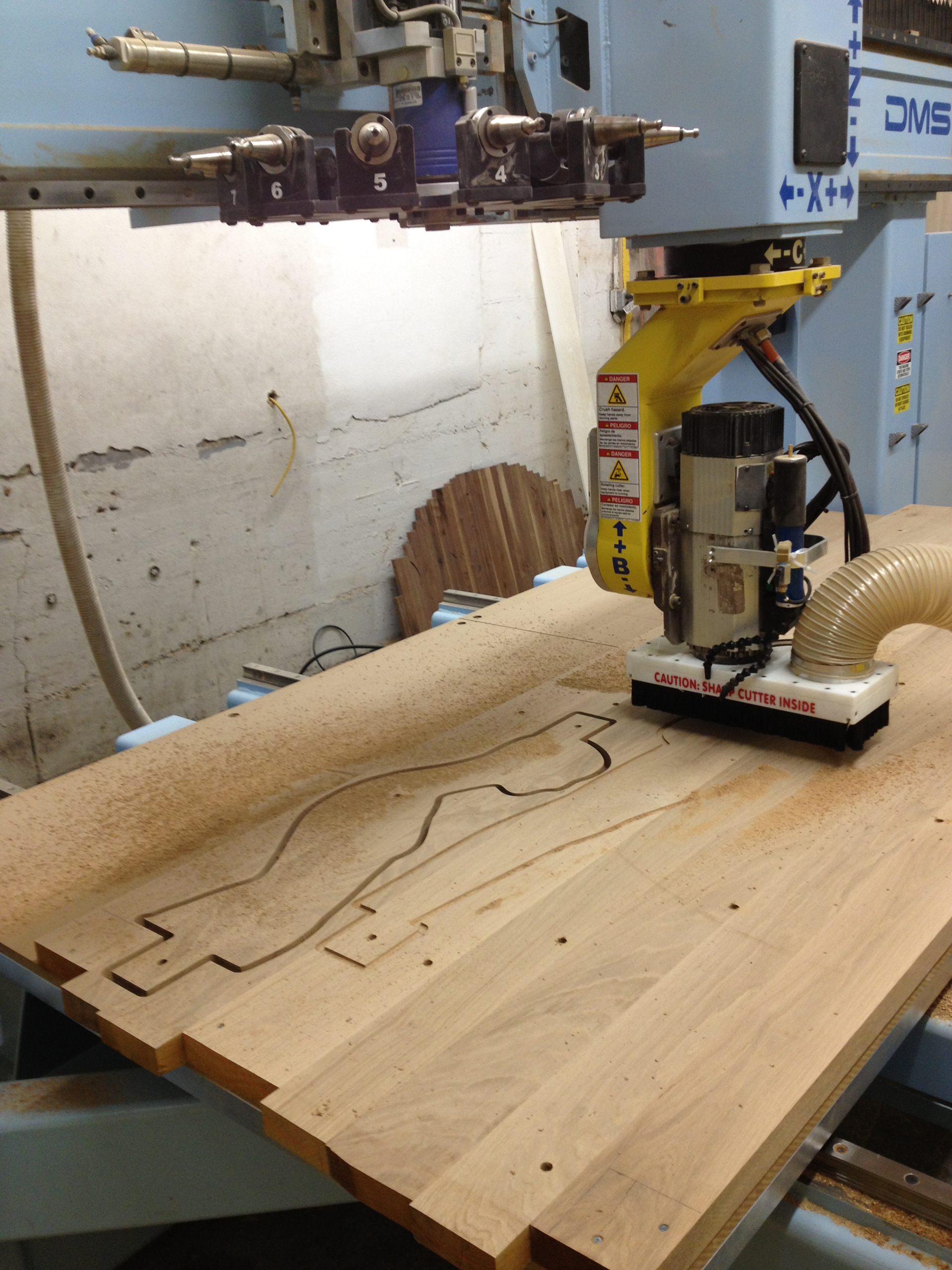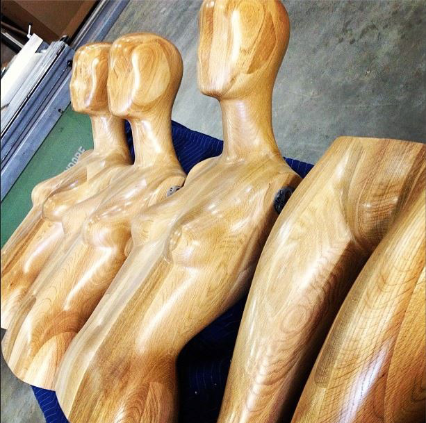 SITU Fabrication was contacted by Marc Jacobs International to create six solid white oak mannequins for fashion week. The mannequins were created by butcher blocking together profiles and using both a 3- Axis and 5-axis CNC Mill to carve the shape. They were then finish sanded by hand and lacquered. My role for the project was a combination of fabrication and research. Primarily, I was in charge of the programming and operation of the 5-axis CNC mill. For this, I used the software Rhino; for the modeling, and RhinoCAM; for the programming. I was also involved in creating and laminating the rough profiles together. and conducting research for hardware options. SITU | Lakhena Raingsan, Matthew White, Abe Weissman, Amy Jarvis, Matthew Burns