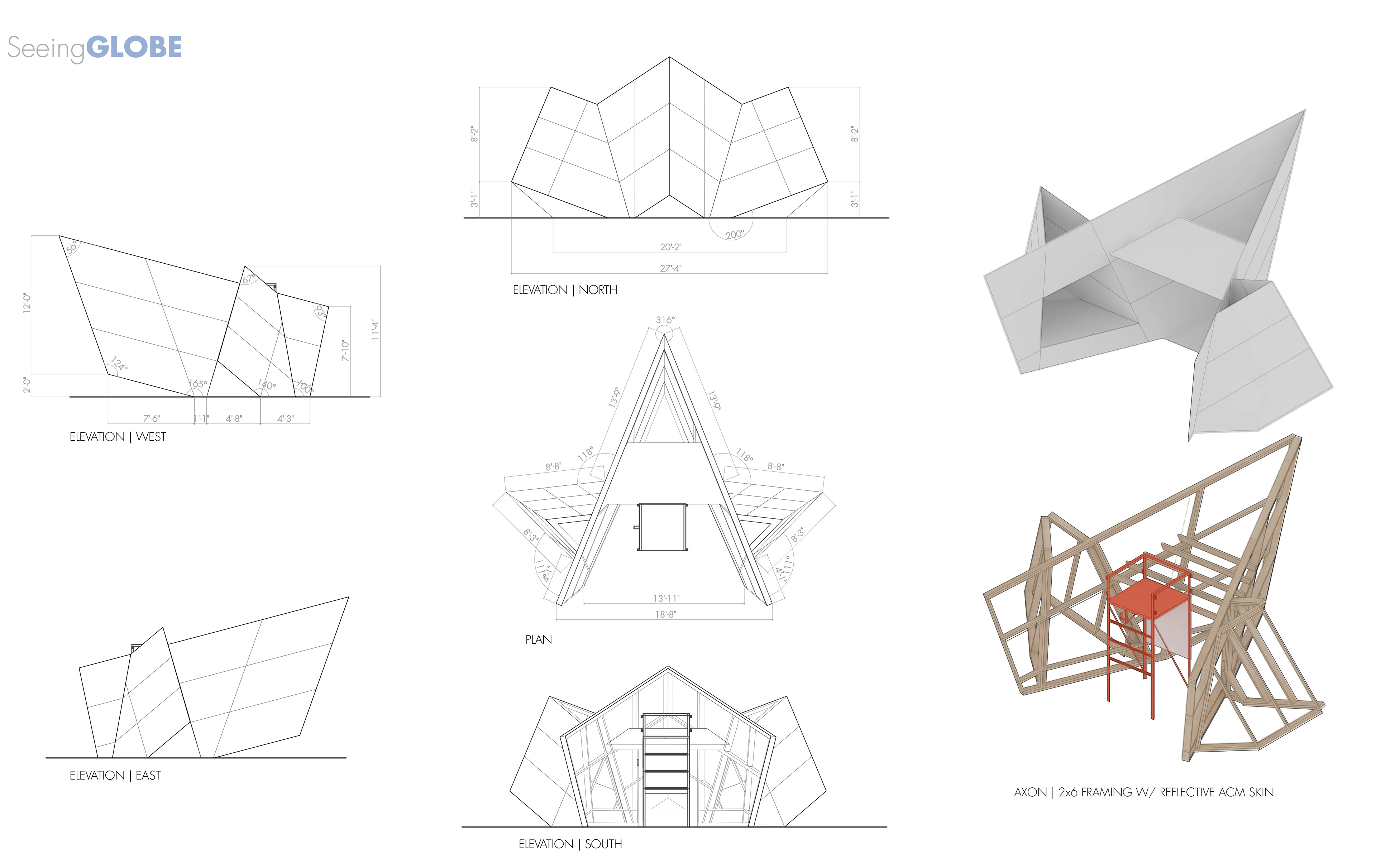 SeeingGLOBE attempts to expose the cause, regional environments. Not by fracturing the physical world but by allowing one new glimpses into the ever changing environment in which we participate. *Submitted the Winterstations 2016 Design Competition